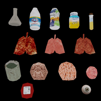 There are 90 (140 with recolors/variants)hospital related assets in the pack as shown in the images.